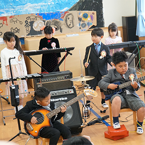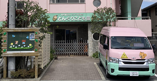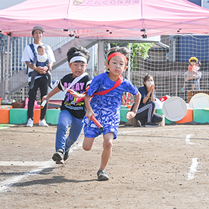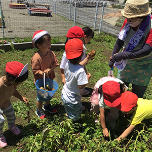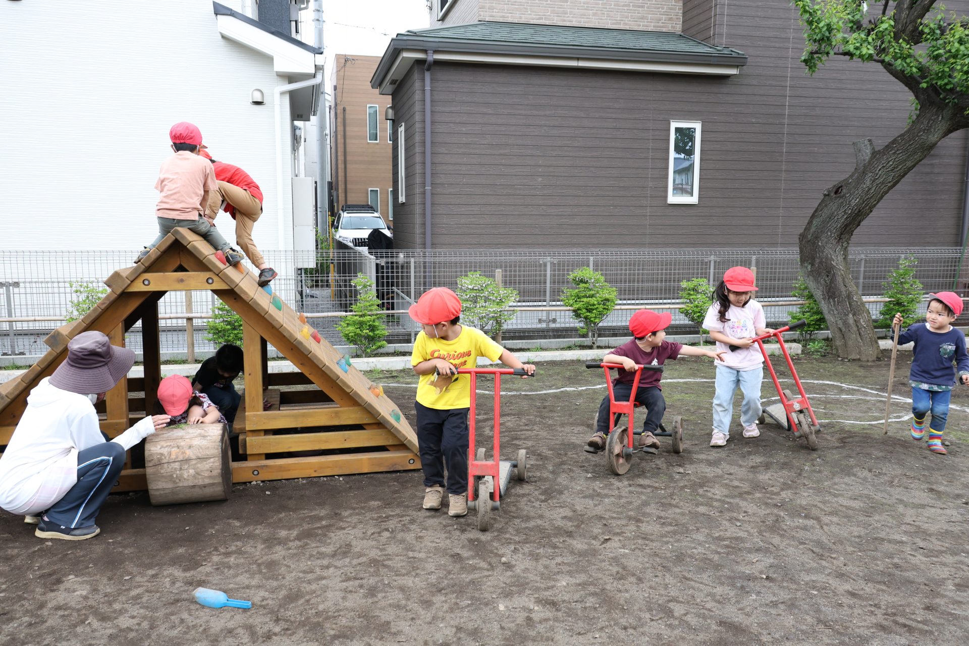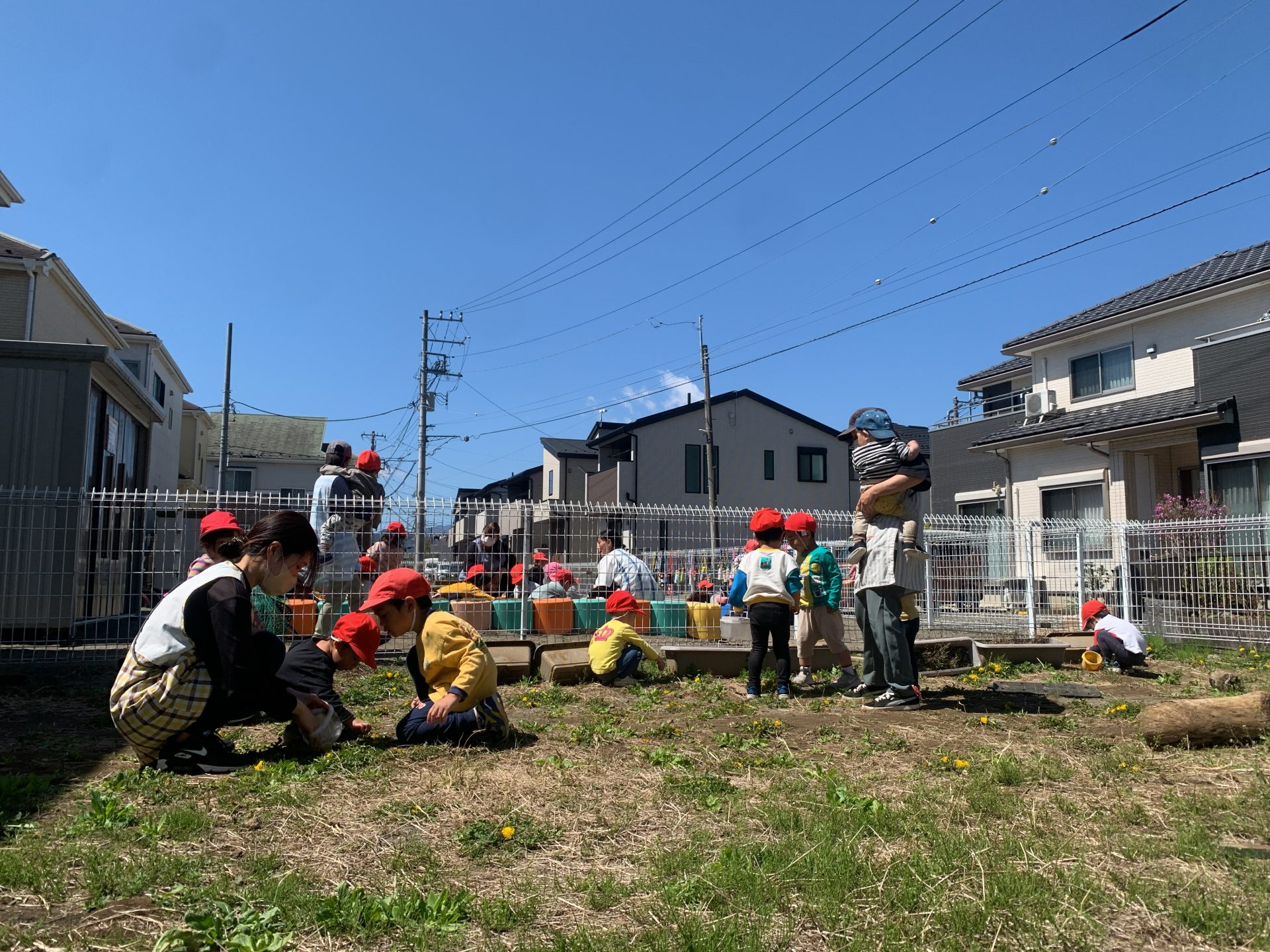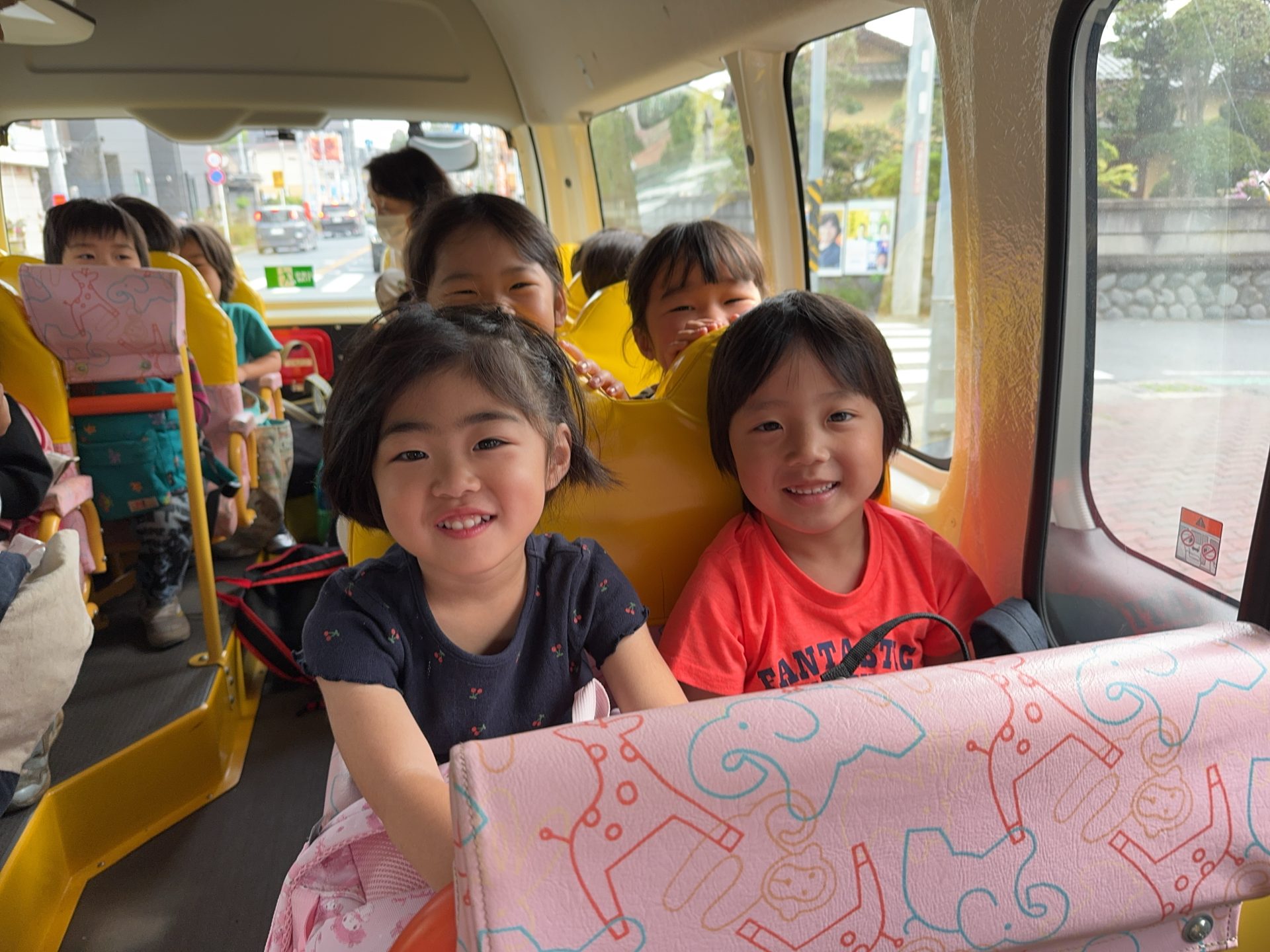 バス出発(5歳児・4歳児、分園から本園へ移動)おやつを食べた後、コーナー遊びや園庭遊びなどして楽しい時間を過ごします。