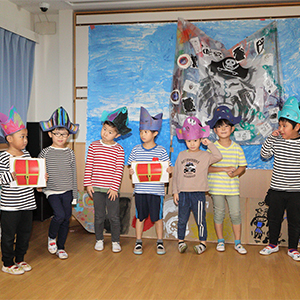 朝の会で挨拶や歌を歌い、その後は年齢に応じた学びやコーナー遊びを中心とした活動を行います。