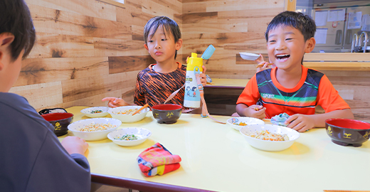 栄養バランスを考えた手作りの給食をみんなで楽しくいただきます。